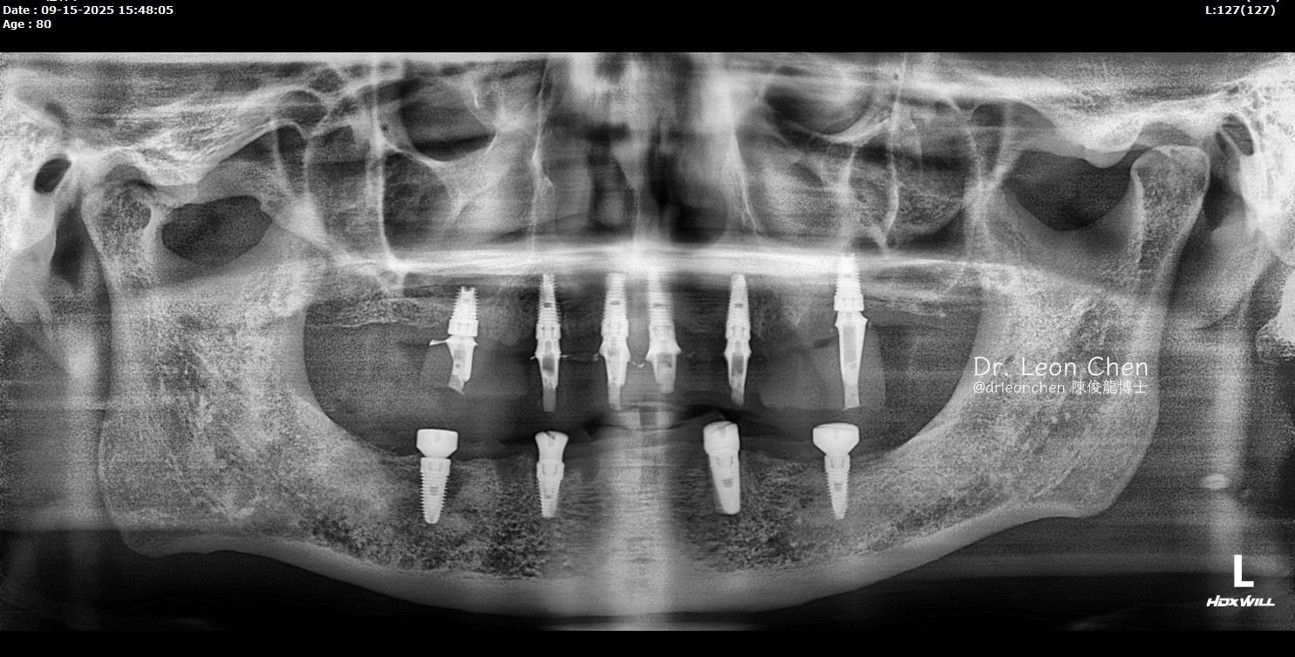 一週後他再回來診所,詢問上下顎可以再多植幾顆嗎?陳博士回答:「當然可以。」