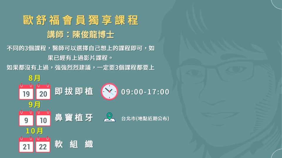 即拔即植課程能夠更加了解到陳博士常在講的「好球帶」;「Leon's box」,如何做到不選擇性植牙?如何做到別人不能做的案例(植牙人球),最後跑回來找我們會員醫師解救?