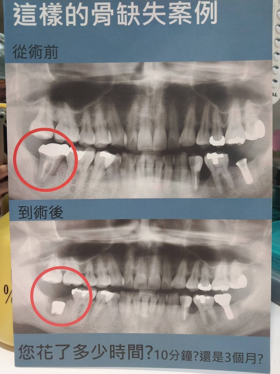時間也是成本吧!一小時時薪多少?如果時薪一千元,植體能省下三小時,和膜、骨釘、鈦網、超音波骨刀,那省下超過一萬塊,植體成本剩多少?0元甚至負數哦!